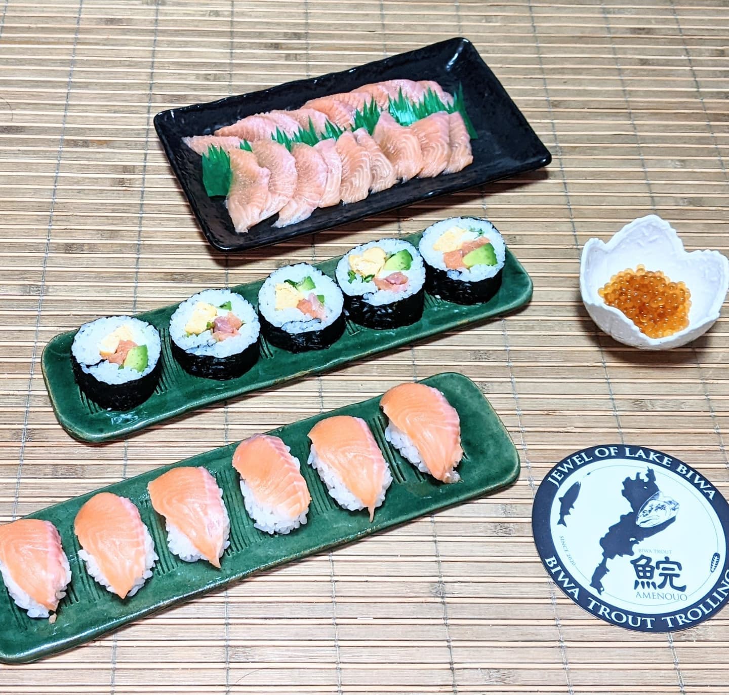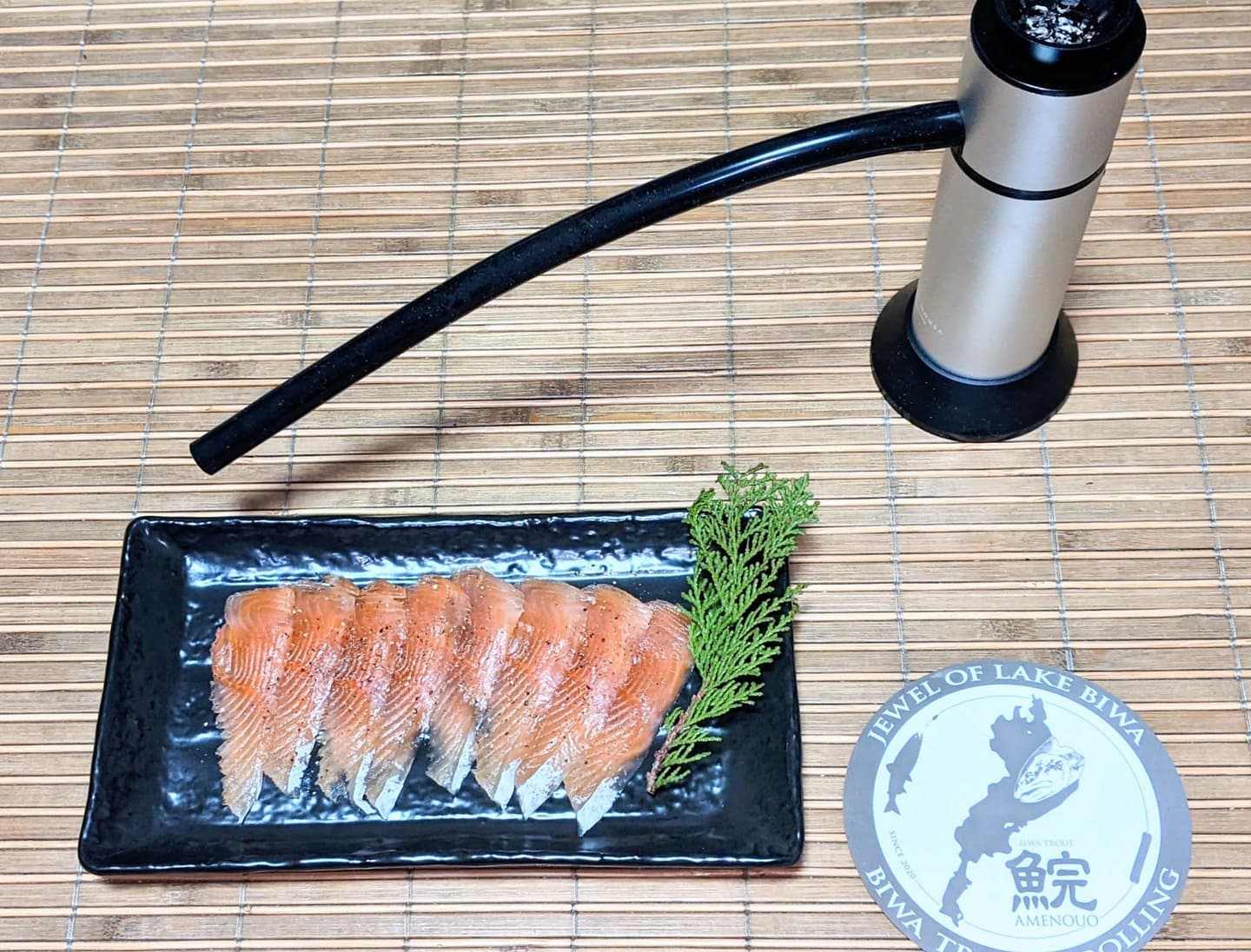 ビワマスは小鮎やエビを食べていてトロにも負けない上質な脂が全身に乗っており、刺身で食べられる唯一の淡水魚です。