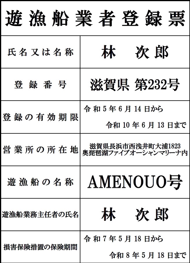 AMENOUO号(SEA SOUTHER510 シーサウザー)でビワマストローリングだけでなくブラックバス・タイラバ等もチャレンジ予定です。